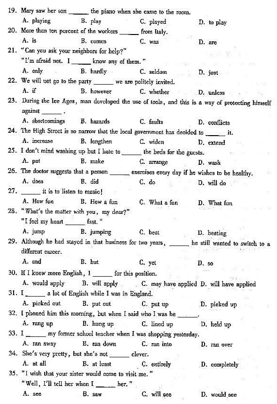 本文标签:湖南成考英语2004年成人高考专升本大学英语试题及答案